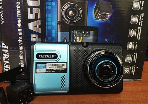 VIETMAP A50 là thiết bị dẫn đường đa năng kết hợp camera hành trinh trước và sau, camera trước ghi hình Full HD, camera sau vừa ghi hình đồng thời còn sử dụng làm camera lùi, tự động chuyển màn hình lùi xe khi cài số R, cảnh báo tốc độ trên từng cung đường và có màn hình hiển thị chuẩn sắc nét IPS 5.0".