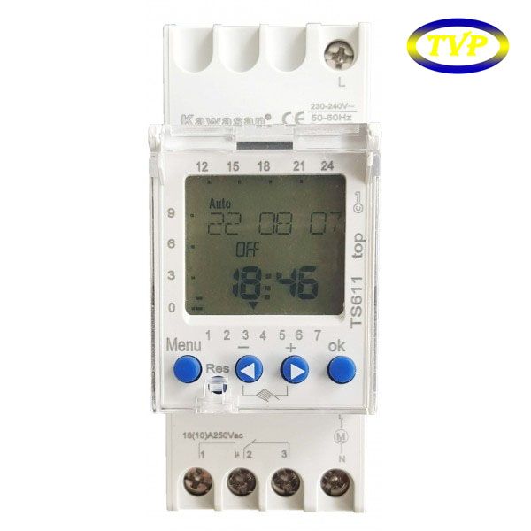Timer TS611-Top là thiết bị hẹn giờ kỹ thuật số ,tự động Bật/Tắt thiết bị điện trong thời gian cài đặt theo đa tính năng (SWICH/PULSE/CYCLE)đáp ứng cả dân dụng và công nghiệp.Với chu kỳ tối đa 44 chu kỳ Bật/Tắt được lặp lại hàng tuần hay từng ngày theo nhu cầu người dùng, thời gian cài đặt tối thiểu là 1 giây.Thiêt bị được tích hợp pin dự phòng mà không cần chỉnh lại giờ khi mất điện